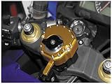 | ✚✚✚ Powerstands Steering Damper Gold H-SD2-GD Top triple tree mounted rotary style damperCNC from billet, anodized black, red, blue, gold, gunmetal and green20 damping settings to minimize head-shakeReplaceable color dial for additional custom lookComes complete with model specific mounting hardwareDial comes standard in anodized blackAll items are sold individually unless specifically described otherwise in the product descriptionThis item fits the following models: 2007-2010 Honda CBR600RR