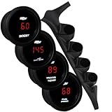 GlowShift 92-97 Ford F-Series Red Digital Diesel Gauge Package Boost, EGT, Trans Temp & Fuel PressureOverview GlowShift's 92-97 Ford F-Series Red Digital Diesel Gauge Package allows you to easily monitor your truck's vital functions while keeping your dashboard free from obstructions, and integrates perfectly with diesel powered vehicles. Vehicle Specific Gauge Pod The included quad pillar pod is specifically designed and color matched for the 92-97 Ford F-Series truck. This pod holds four 52mm (2 1/16th inch) gauges, is crafted from ABS plastic allowing it to withstand cracking, fading and warping, and is easily installed to your existing A-pillar giving your truck a custom fit and finish. Gauges Included This Red Digital Series Gauge Package features a 60 PSI boost gauge with an electronic sensor that installs to your intake manifold, an EGT gauge that includes an exhaust temperature probe with 6 feet of steel braided cable, as well as an electronically driven transmission temperature gauge with temperature sensor and an electronically driven 100 PSI fuel pressure gauge with pressure sensor. These 52mm (2 1/16th inch) gauges include a collection of simple, yet highly effective and reliable features such as fully electronic sensors, a calibration startup sequence to ensure proper readings and connections, as well as an easy to read digital LED display built in a sleek, ultra-thin design. Every Red Digital gauge can dim to 30% brightness when connected to your factory headlight switch for easier monitoring when driving at night! Ease of Install This Red Digital Series gauge package includes all hardware, sensors, probes, adapters, and fittings required to install your new gauges and pillar pod. Lifetime Support GlowShift includes a one year limited warranty and lifetime technical support with every gauge package purchased.